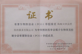 中國(guó)、珠海有害生物防治協(xié)會(huì)A級(jí)資質(zhì)認(rèn)證